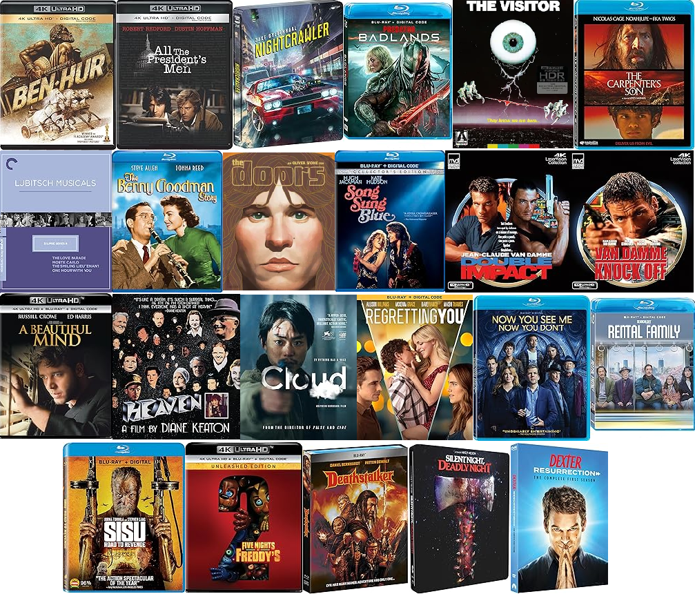 A trend certainly develops along this week’s path of physical media with Erik Childress and Peter Sobczynski. It is a week that offers musicals from Ernst Lubitsch, a double (or, actually, triple) dose of Van Damme and one of the craziest sci-fi horror films you will ever see. But it is also a week about truth and liberties. They go from the music side of the aisle in biopics about Benny Goodman and Jim Morrison. Diane Keaton takes you into the various depictions and mysteries of the afterlife. There is also another Tale of the Christ setting the record for the most Oscars for over 40 years as well as Ron Howard’s Oscar-winning Best Picture. Finally there is the journalism of today with Jake Gyllenhaal and perhaps the greatest film about the profession celebrating its 50th anniversary.